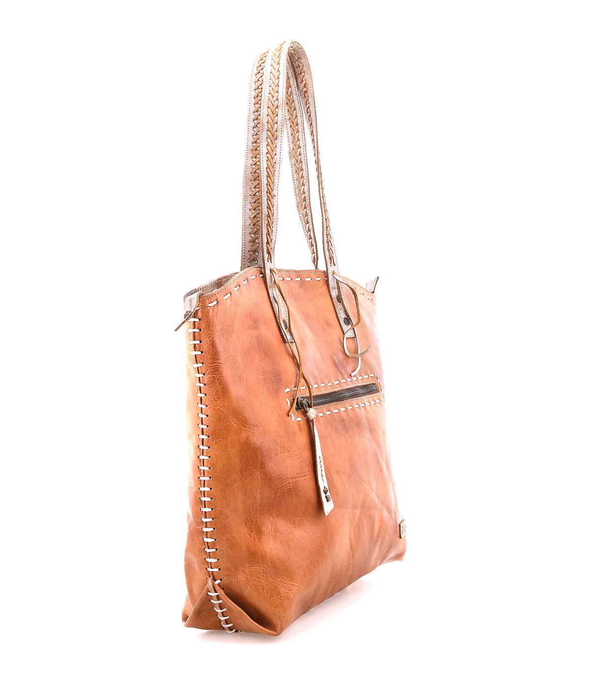 Barra is a handmade leather tote designed to fit all your essentials comfortably. Available in multiple vintage, eco-friendly finishes, Barra stands out with its eye-catching contrast stitch detail. The braided strap with leather fringe is skillfully handcrafted, making this leather tote an ideal choice for your daily endeavors.