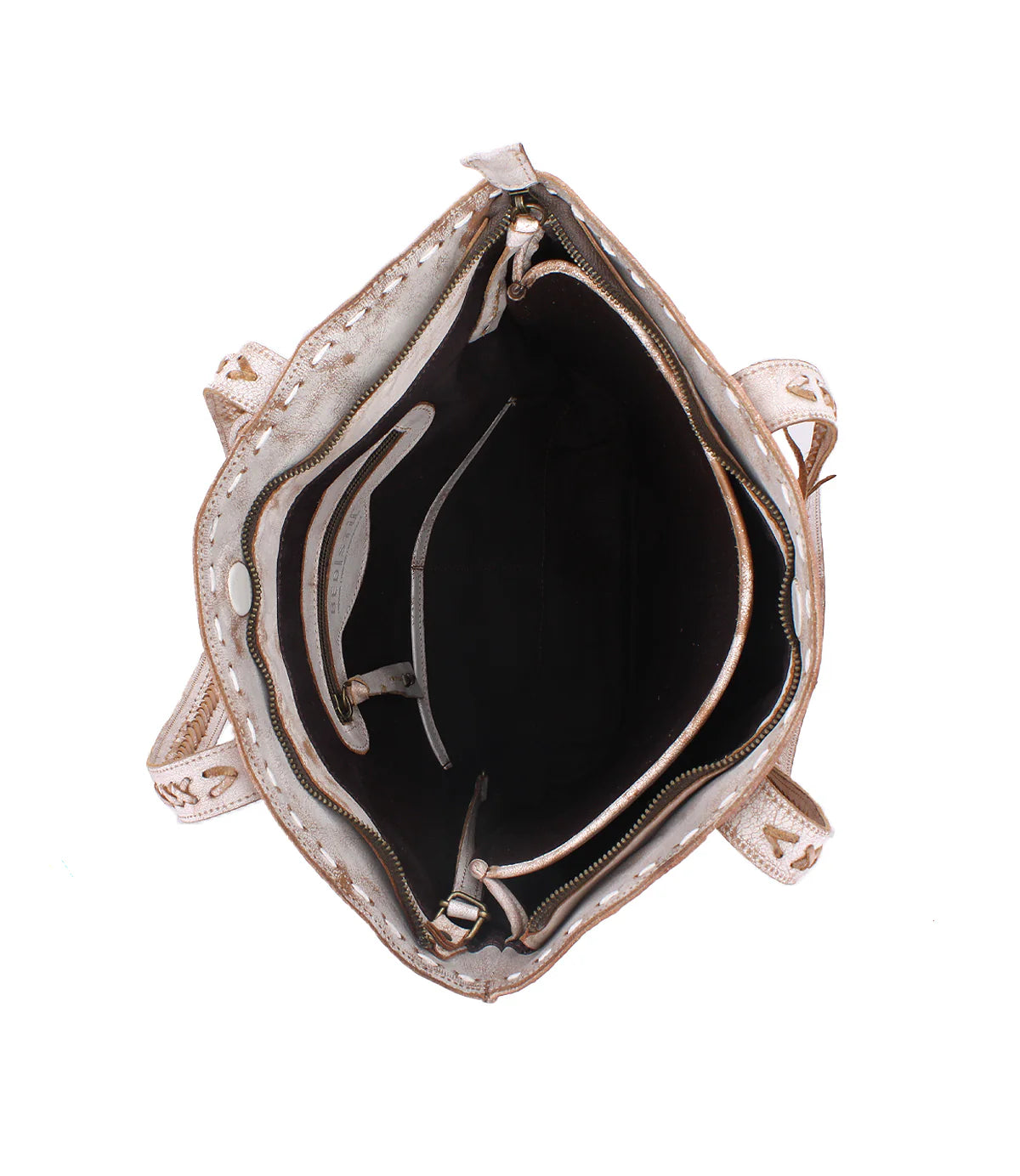 • Heavy contrast stitching throughout, cross braid strap accent with fun fringe