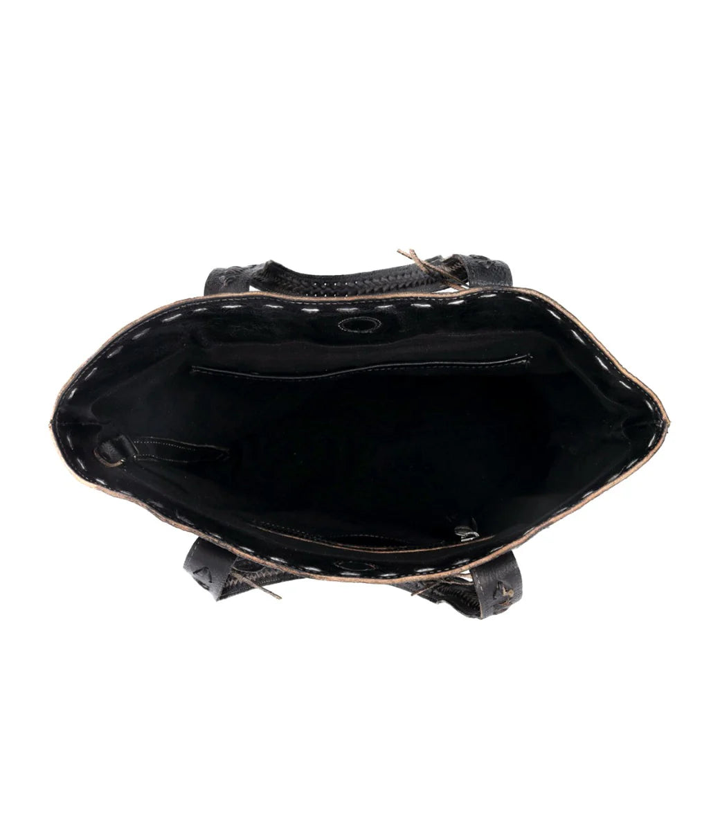 Barra is a handmade leather tote designed to fit all your essentials comfortably. Available in multiple vintage, eco-friendly finishes, Barra stands out with its eye-catching contrast stitch detail. The braided strap with leather fringe is skillfully handcrafted, making this leather tote an ideal choice for your daily endeavors.