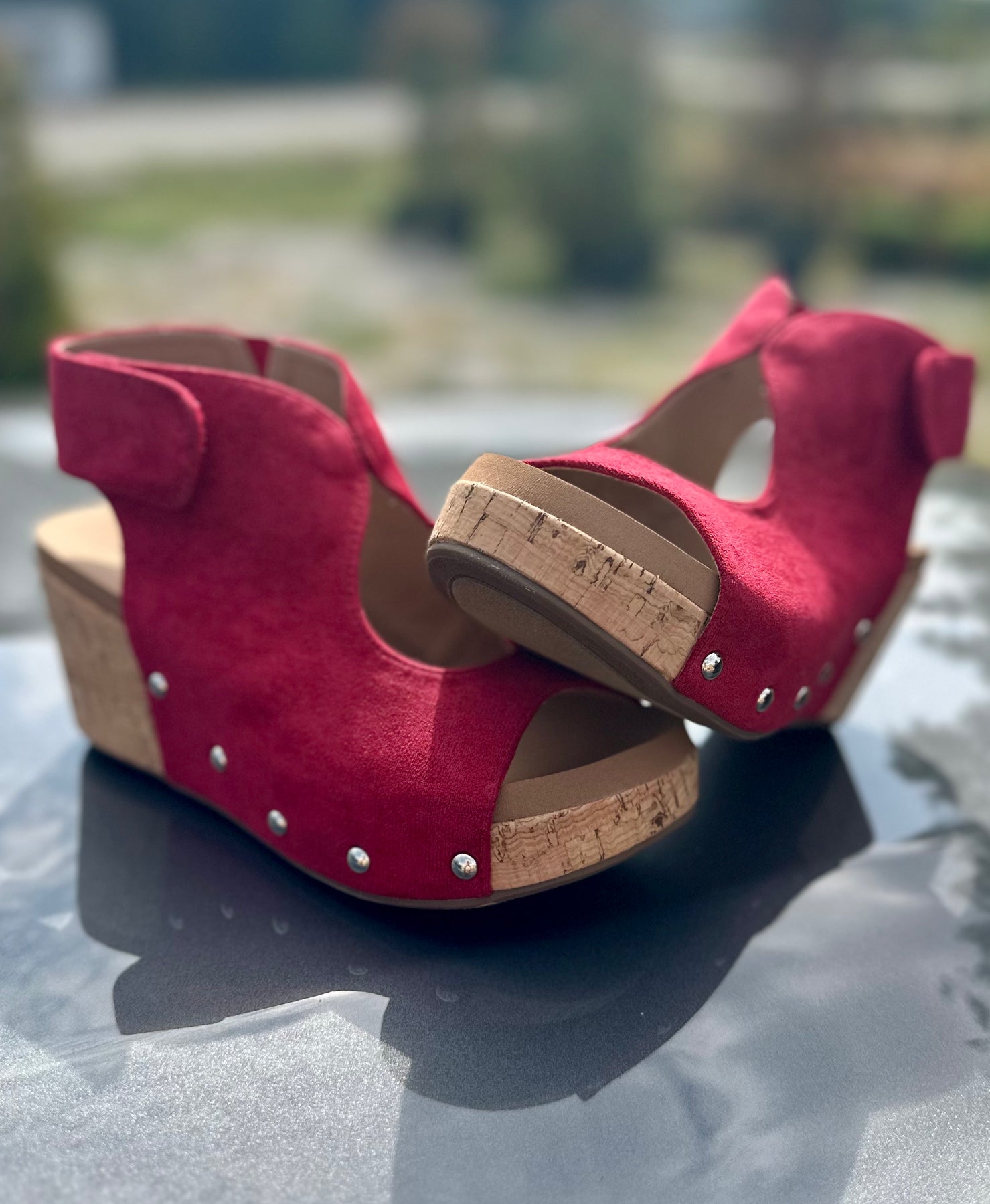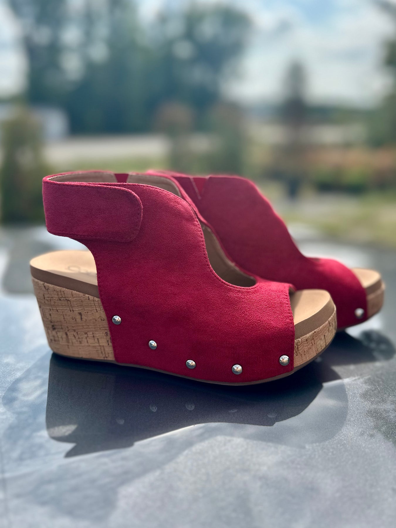 Corkys "Frisky" in Dark Red Faux Suede