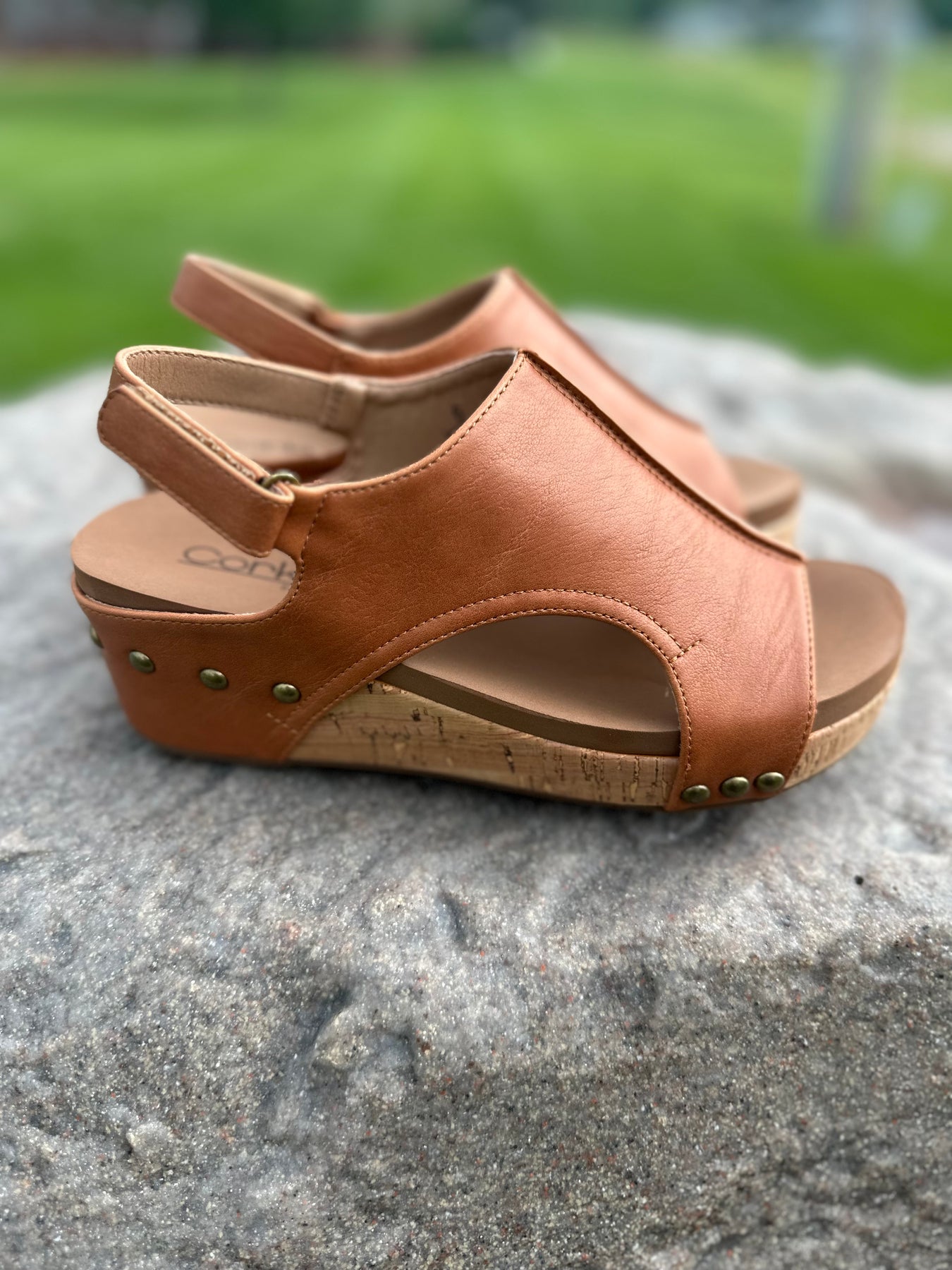 Step out in style with the Corkys Footwear Women's Volta II Wedge Sandal. These eye-catching wedges are crafted in leather and feature studded accents for added flair. The comfortable velcro strap heel and soft cushion bed ensure a trendy yet comfortable fit. These sandals are true to size, but it is recommended to size up if you're between sizes. Make a statement with these fashionable and comfortable wedge sandals.