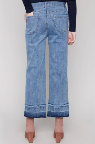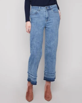 Charlie B Cropped Flare Leg Jeans With Fringed Hem