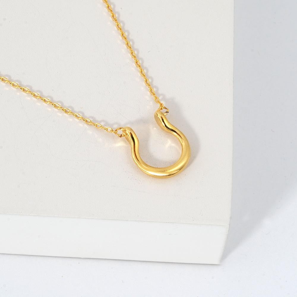 Gold Dainty Chain Link Necklace Featuring Metal Tone Horseshoe Pedant