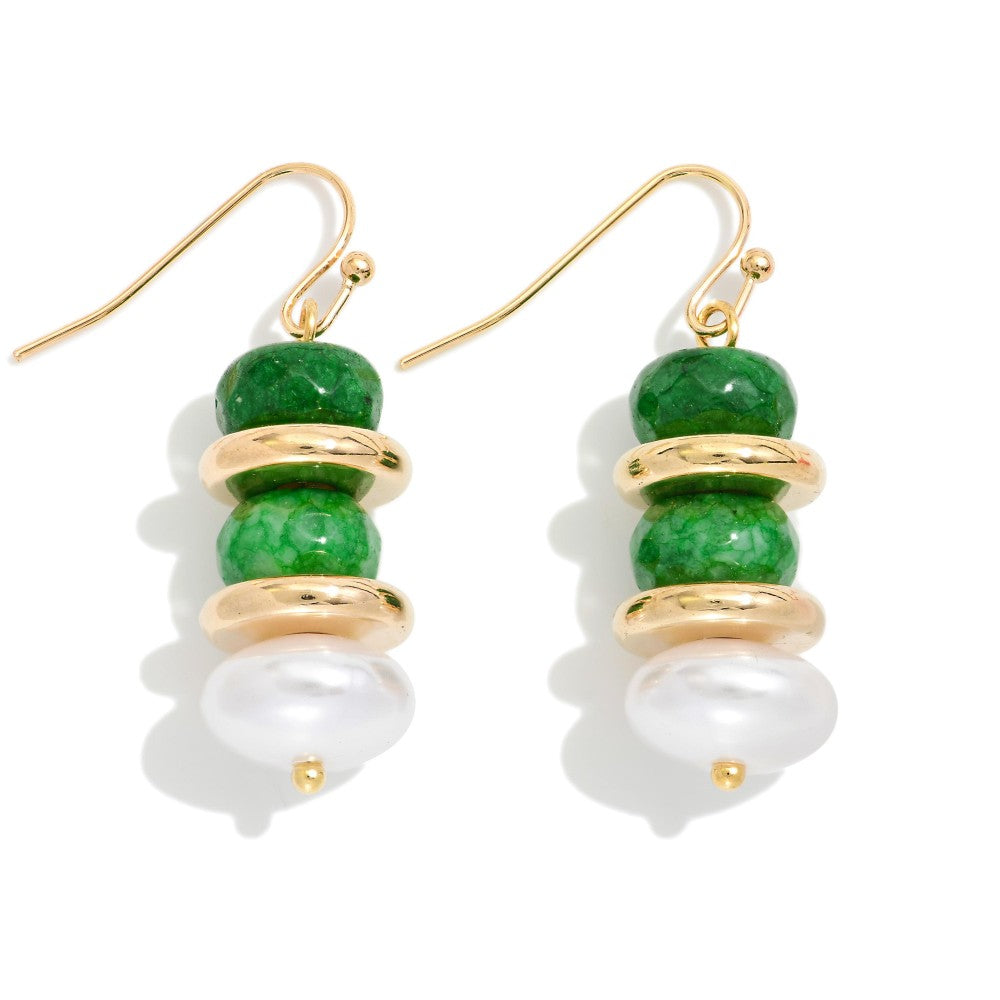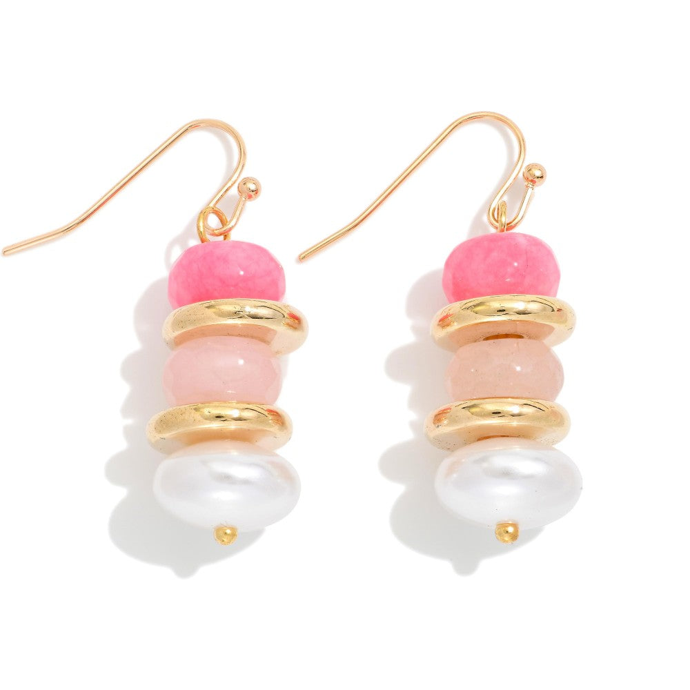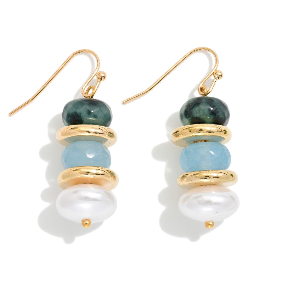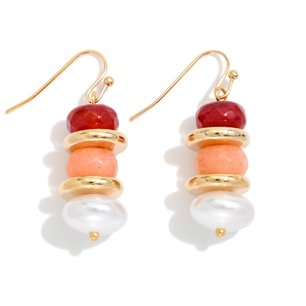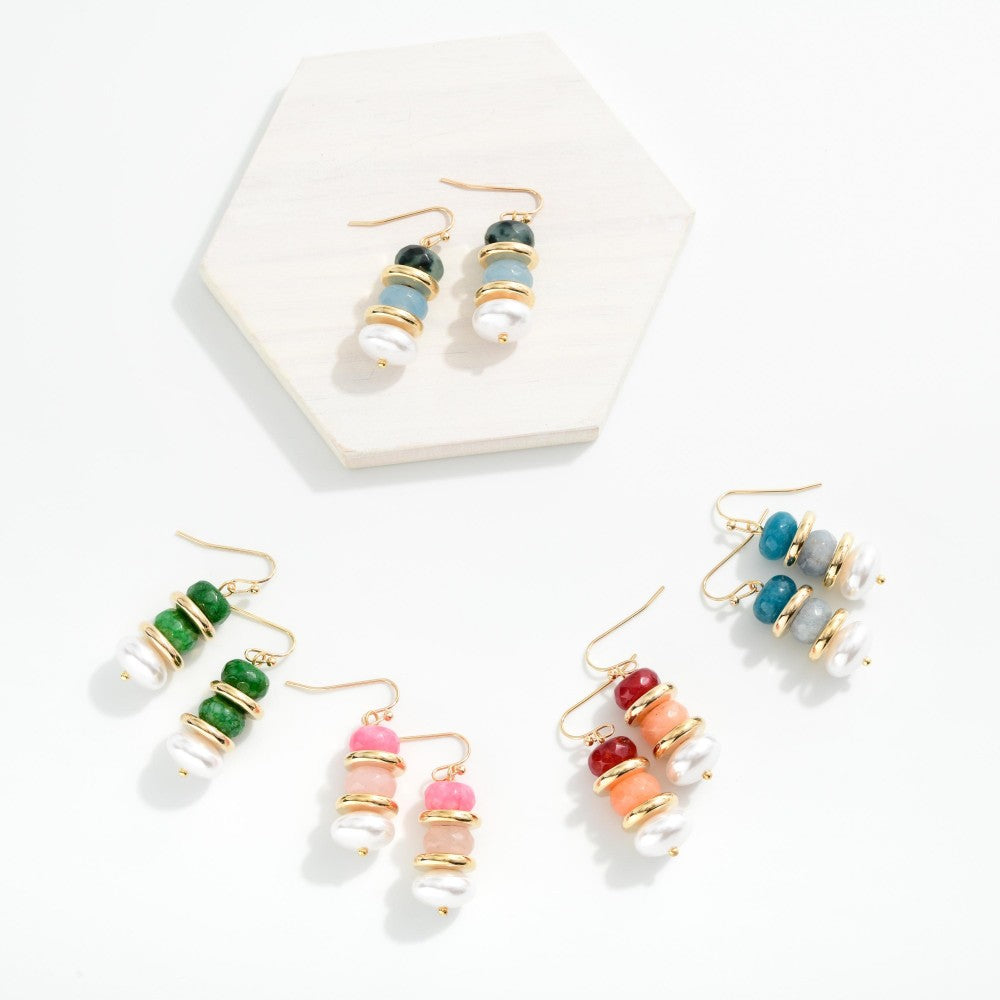 Stacked Beaded Drop Earrings Featuring Gold Tone Rings & Pearls (4 Colors)