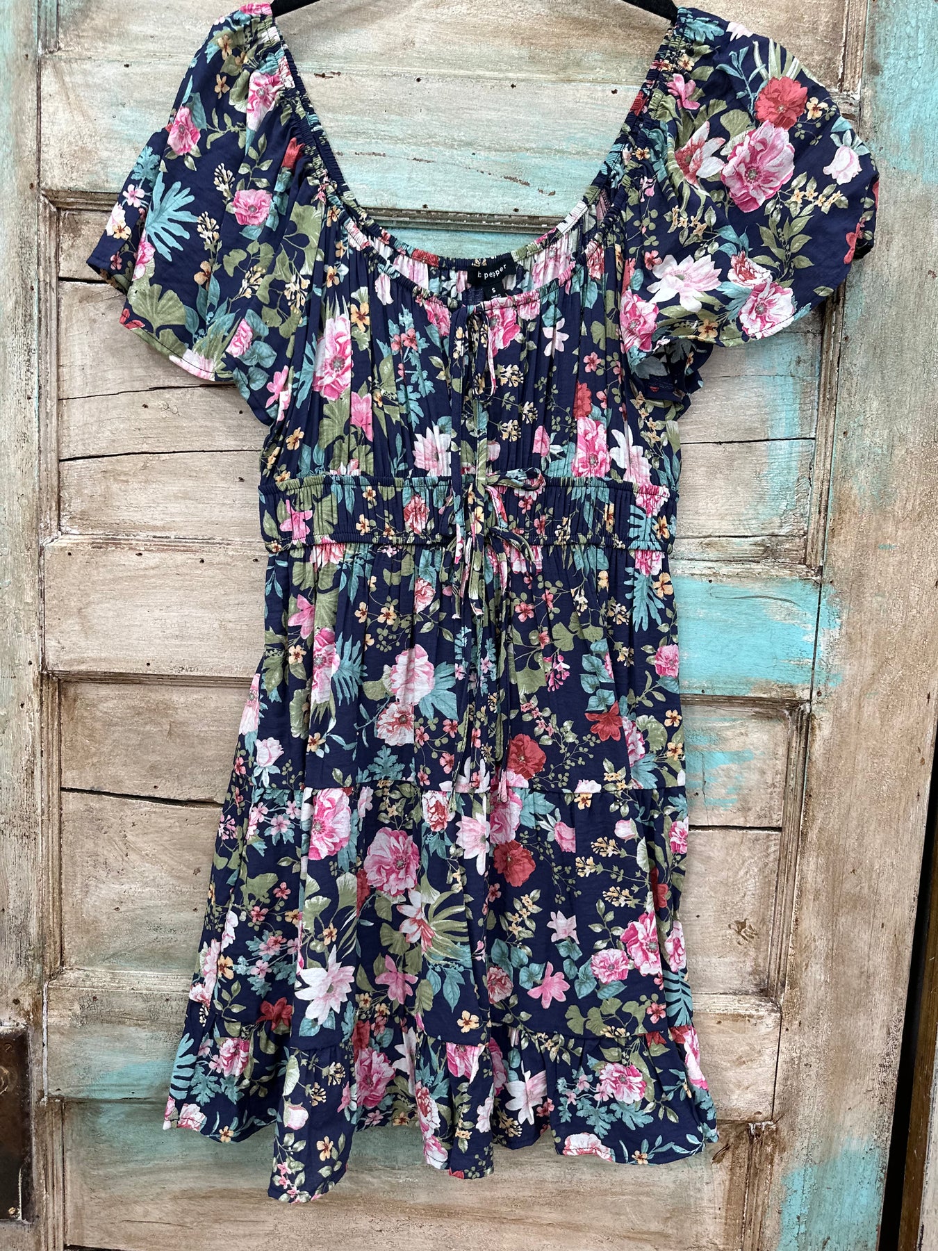 Get ready to make a statement in our FLORAL FRONT TIE SCOOP NECK TIERED MINI DRESS! The scoop neckline and short sleeves are perfect for warm weather, while the front self tie detail adds a playful touch. The adjustable tie shirred waist and closed self tie tiered ruffle hem create a flattering silhouette, and the floral print adds a pop of color. Made with a lightweight and breathable fabric, this dress will keep you stylish and comfortable all day long. Add it to your wardrobe today!