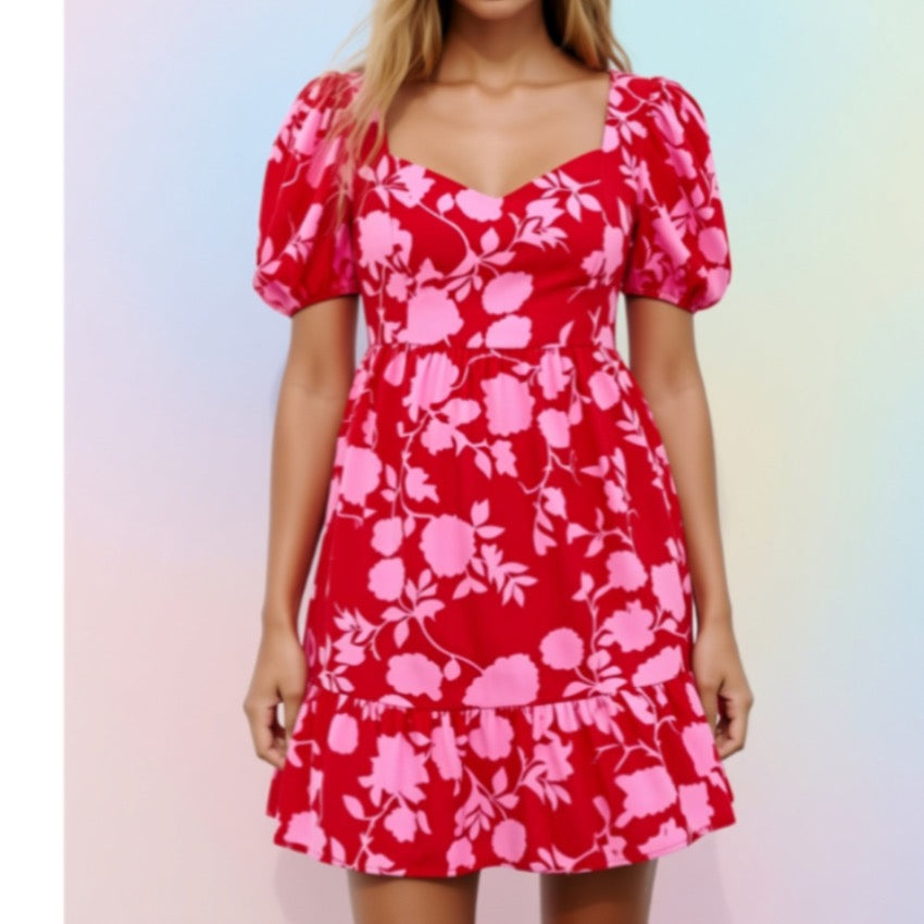 Crafted from premium 100% polyester, this floral mini dress combines romantic design elements with practical durability. The puff sleeves add dimensional elegance, while the sweetheart neckline flatters the décolletage with timeless appeal. Delicate ruffled detailing throughout creates movement and visual interest. The lightweight fabric ensures comfortable wear for various occasions, from casual outings to special events. Easy to care for and designed to maintain its shape, this dress delivers both style and wearability in one charming piece.