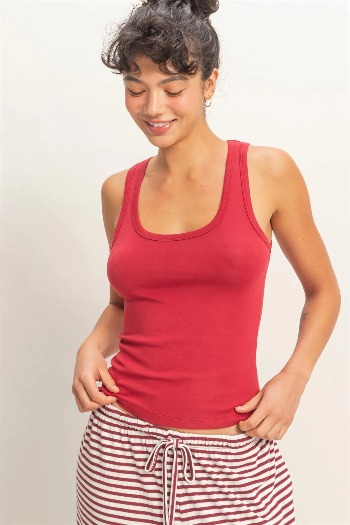 This sleek, classic tank top is constructed from a soft, cotton blend featuring a low scoop neckline and smooth armholes. Cut in a skimming, close-to-body fit, this piece is the ultimate layering staple. This versatile piece pairs perfectly under a denim jacket and jeans for a laid-back look.
