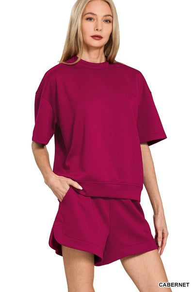 Cabernet Scuba High Neck Top & Dolphin Shorts Set