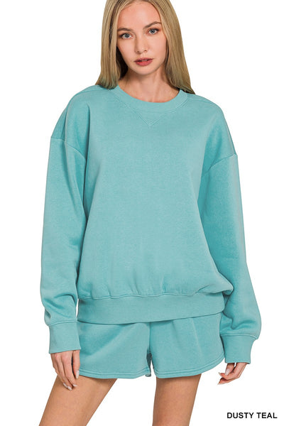 Dusty Teal Fleece Long Sleeve Sweatshirts & Shorts Set