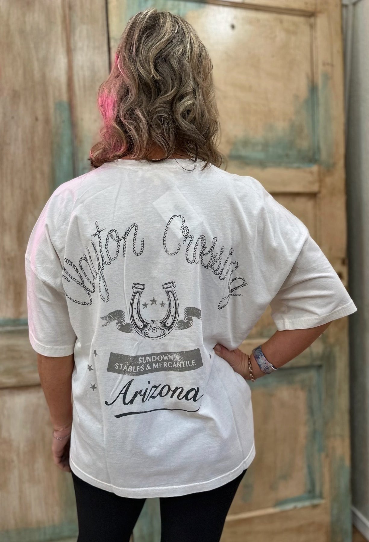 Meet your new everyday essential—the Clayton Crossing Tee in Ivory. Crafted from 100% cotton by JOA brand, this laid-back classic feels as good as it looks. Perfect for layering or going solo, it's the kind of tee that works harder than it looks. Soft, breathable, and ready for whatever your day throws at you. Simple style, serious comfort.