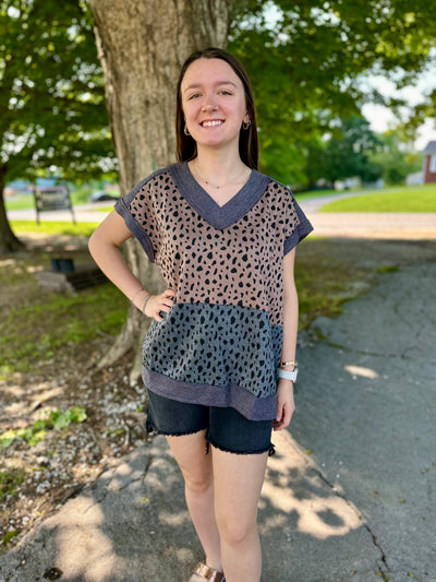 Leopard Knit and Texture Knit Mixed Vest with Front Pocket