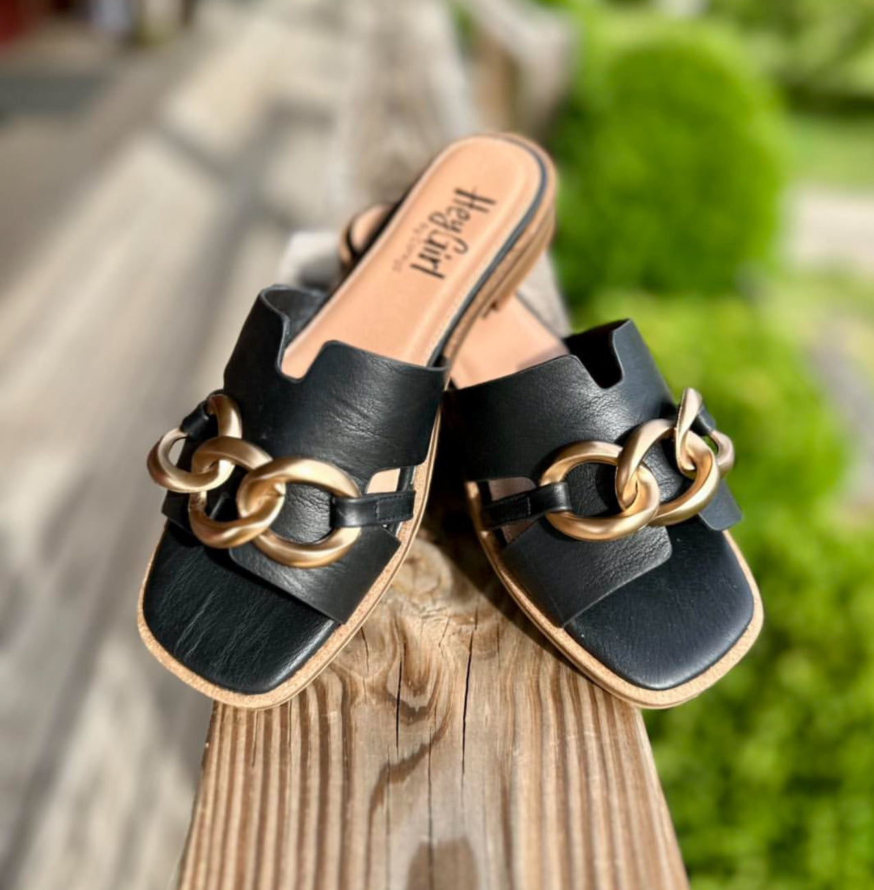 Step out in style and comfort with Corkys "Off the Chain" Sandals! These lightweight sandals feature a cushioned footbed and a tiny 1" rubber heel for maximum comfort. The eye-catching gold chain detail adds a touch of elegance to any outfit. Perfect for all-day wear.
