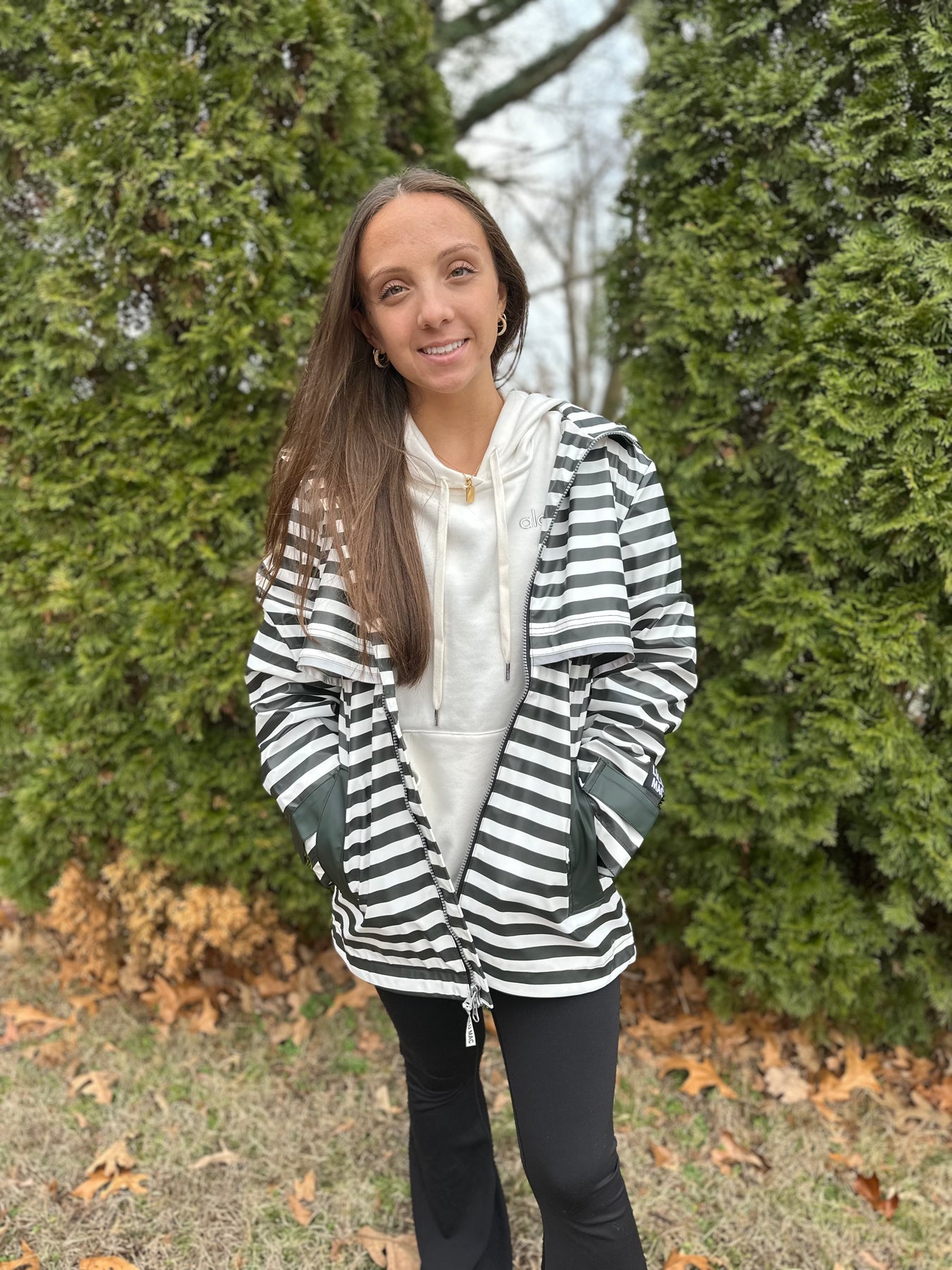 Splash into rainy days with the Lulu Mac Darby Raincoat in Black/White! Its waterproof polyurethane shell and cozy polyester lining keep you dry and comfy, while the playful colors brighten up any gloomy weather.