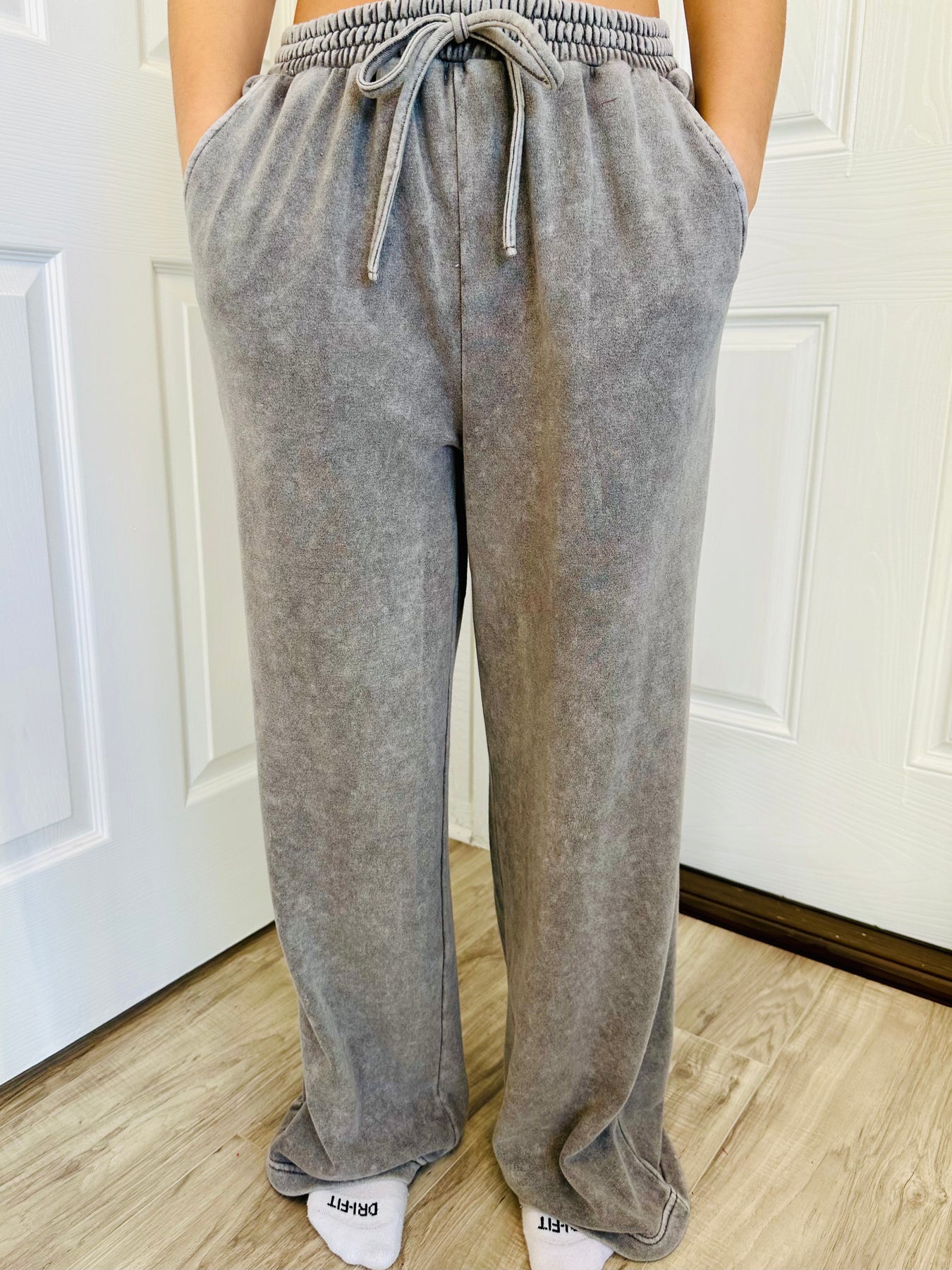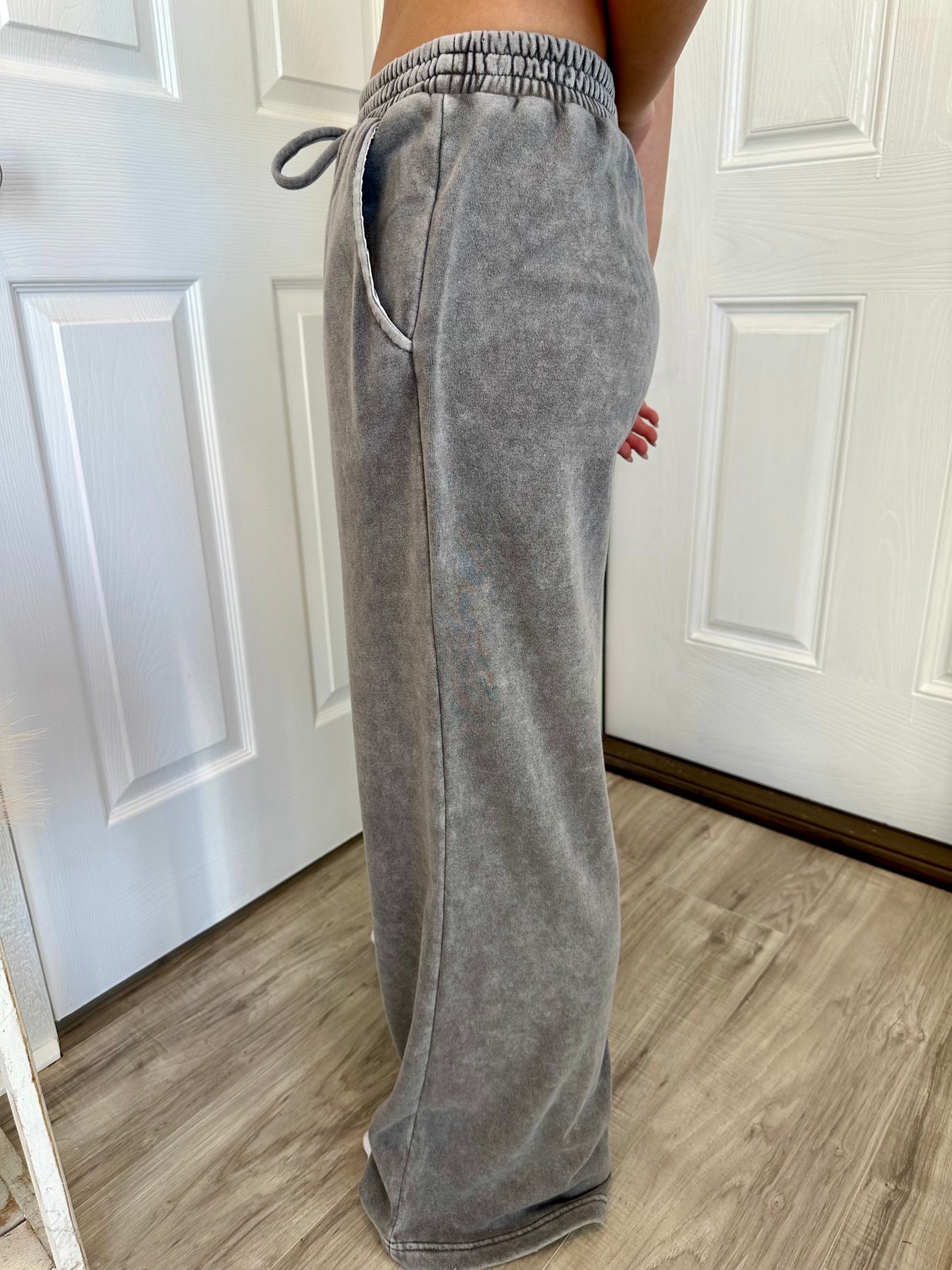 SC CHARCOAL WASHED WIDE LEG DRAWSTRING LOUNGE PANTS